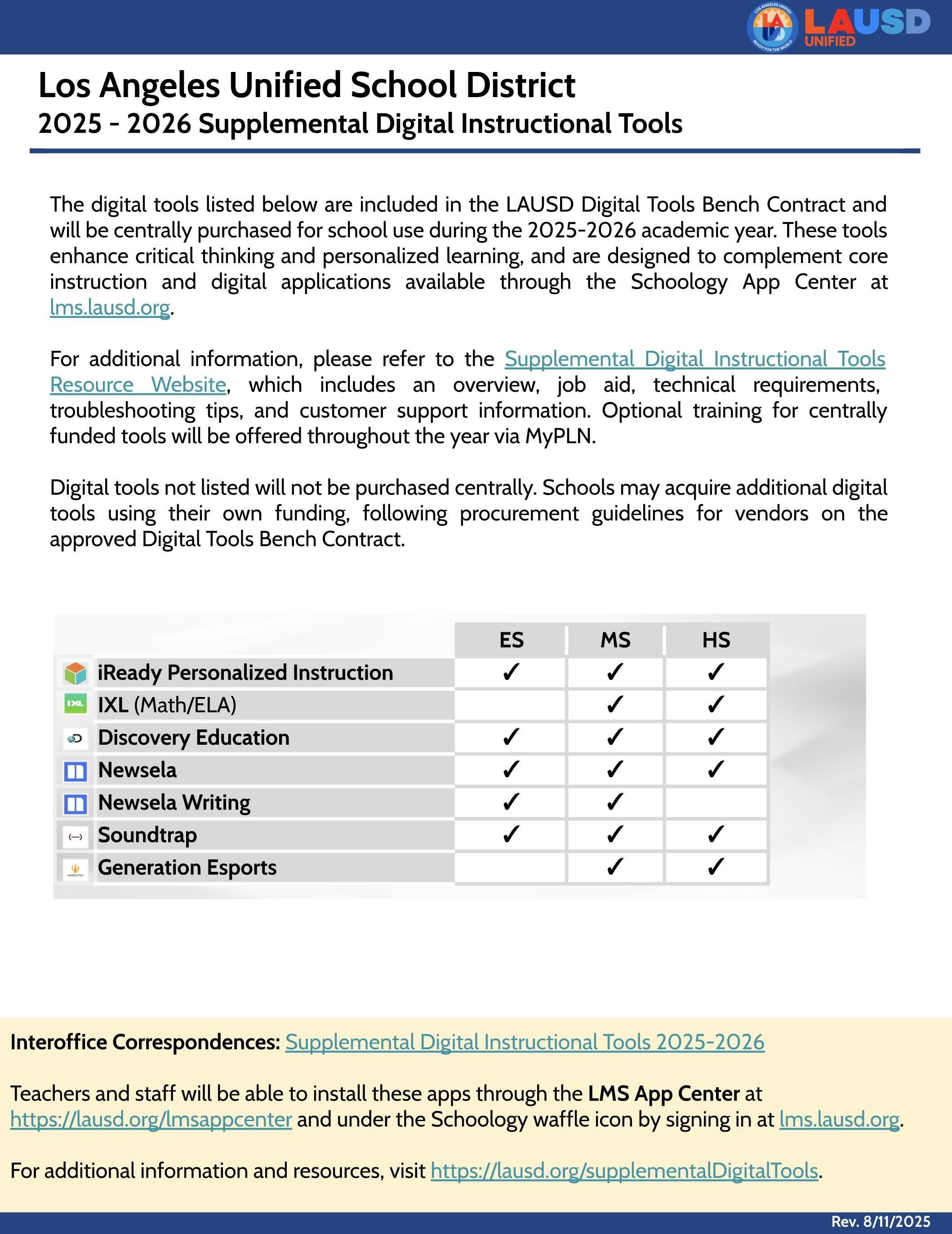 Supplemental Digital Instructional Tools